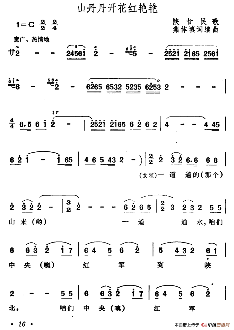 山丹丹花开红艳艳 乐谱