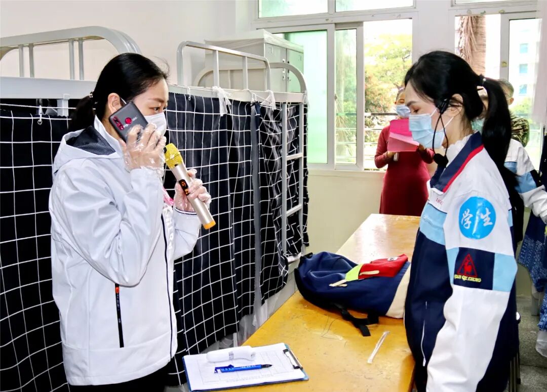 校内宿舍,学生晚上就寝前生管测体温,发现体温异常学生