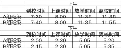 第一节:8:00~8:45 第二节:8:55~9:40 第三节:9:55~10:40 第四节:10:50~11:35
