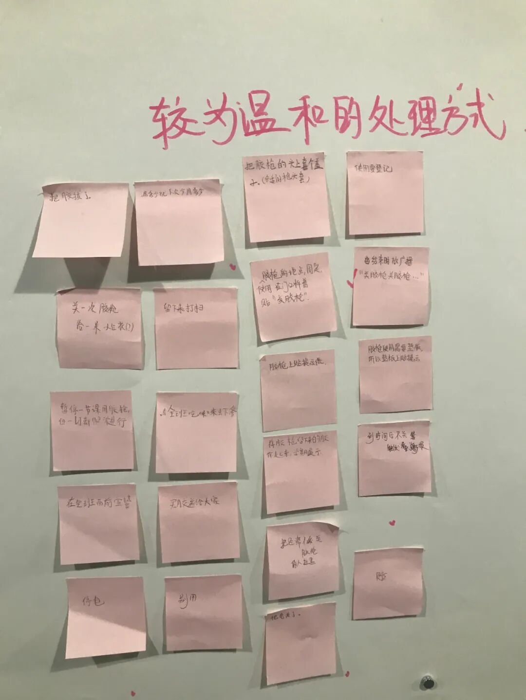 首先,需要再次强调,头脑风暴环节中想出的所有解决方案,暂不考虑各种限制条件,比如用户家庭情况、经济条件、方案可行性等等。