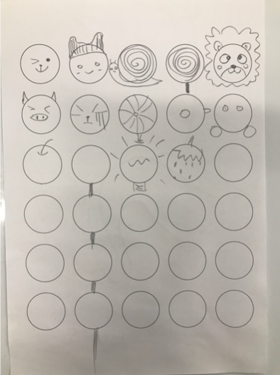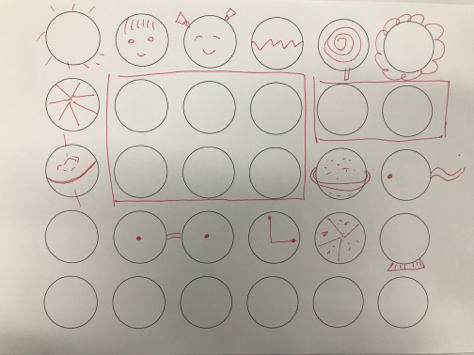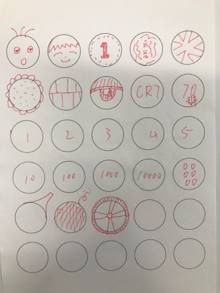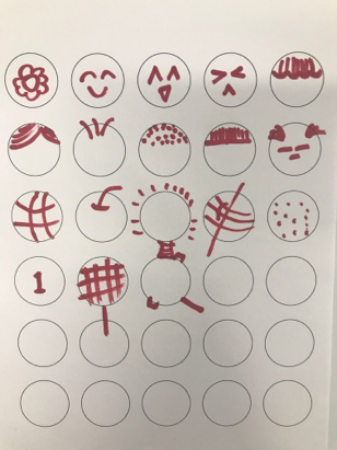 当想到画一个笑脸时,马上就能联想到哭脸、痛苦脸、难过脸…这种彼此关联的创意,可以很快的填补其他的圆圈。