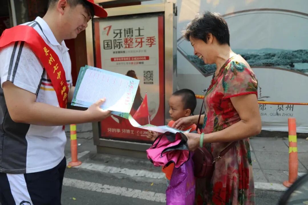 我校刚参加完高考的高三“晦鸣”青年志愿者队伍趁着难得的假期,响应母校号召,参与“我为母校添光彩”志愿服务活动。他们沿街发放文明创城宣传单,向市民宣讲文明城市创建工作的重要性。