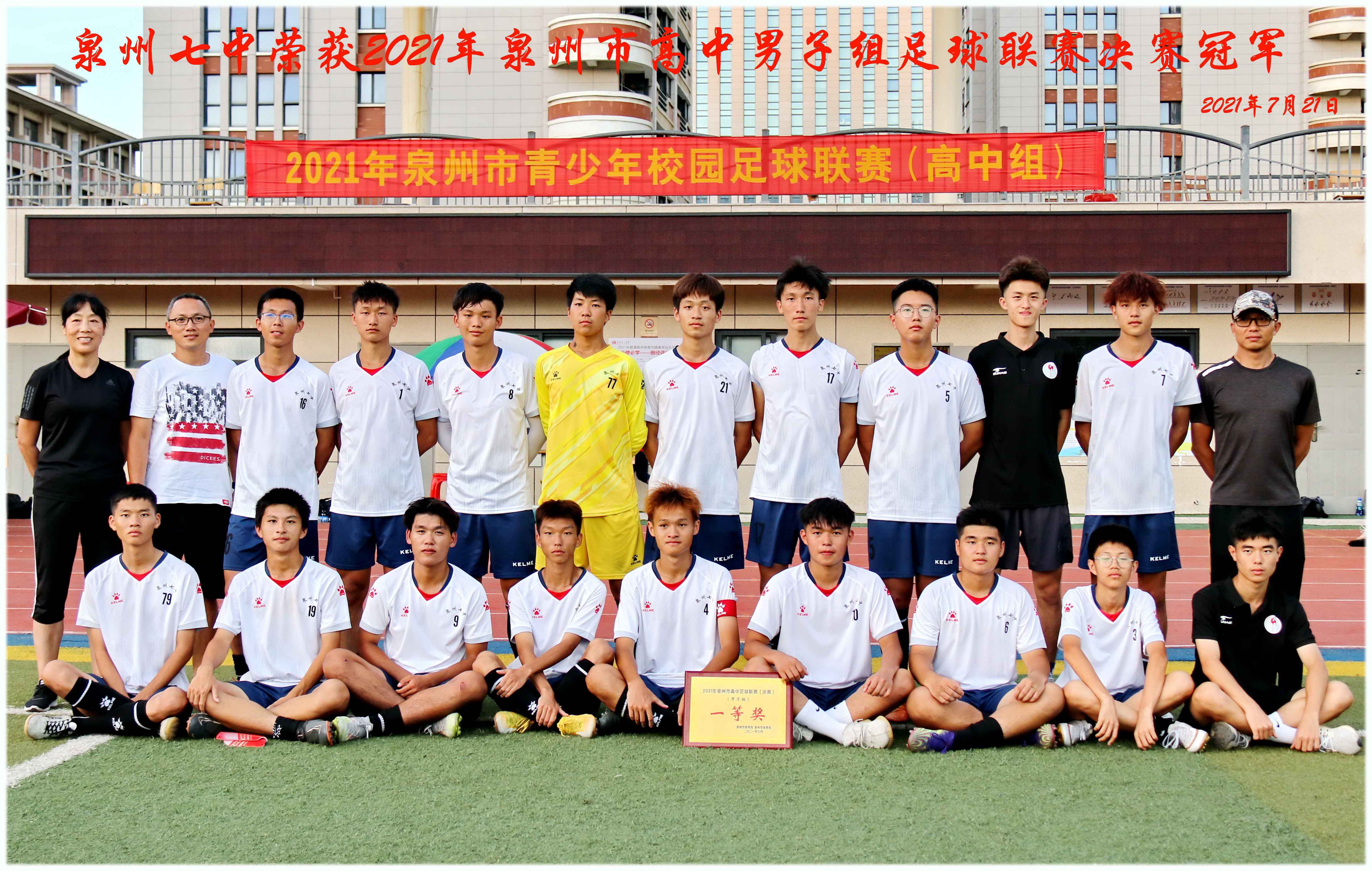 2021年7月21日,由泉州市教育局、泉州市体育局主办的2021年泉州市青少年校园足球联赛(决赛)在泉州一中东海校区圆满落幕。本次联赛男子组共有19支队伍参赛,经过历时八天的小组赛、淘汰赛、半决赛、决赛等环节,我校高中男子足球队(领队:李莲莲 教练:吴伟聪 )齐心协力、顽强拼搏,以零失球和29个进球的佳绩勇夺冠军!这也是我校高中男子足球队连续三届夺得冠军,充分展示了我校敢为人先、爱拼敢赢的精神特质和良好的精神面貌。