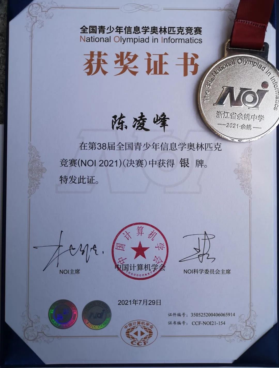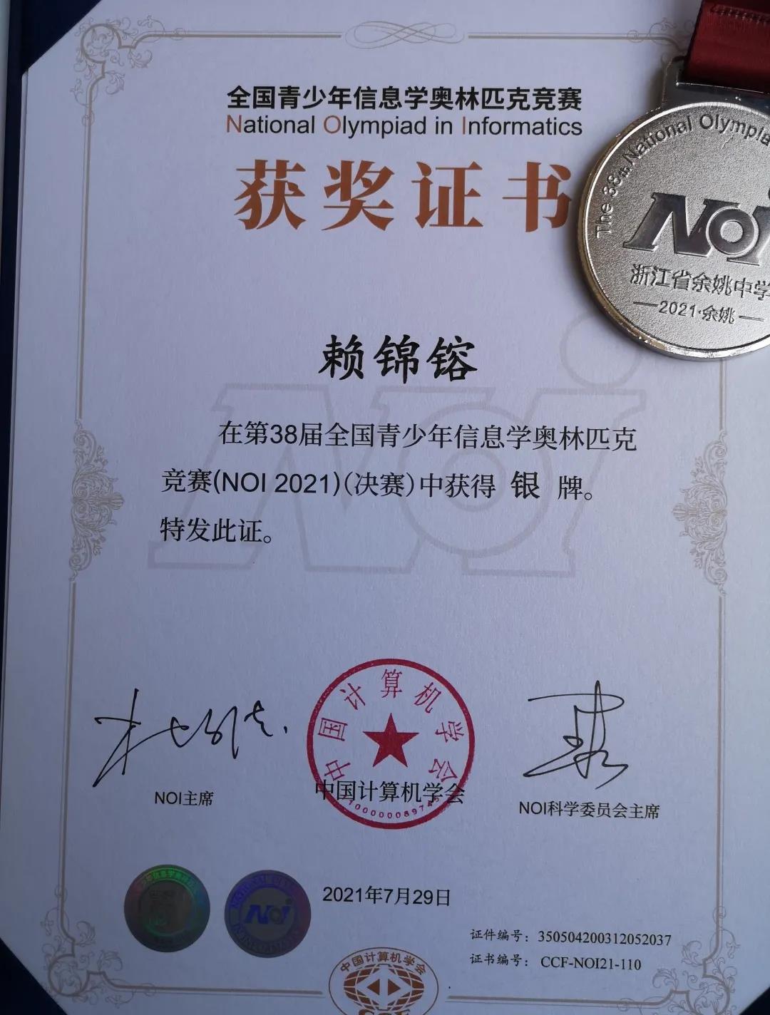 泉州七中学子在全国信息学竞赛中勇夺2枚银牌