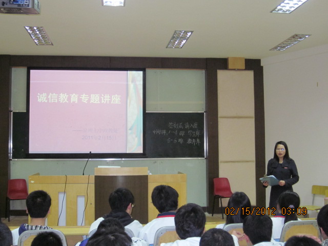 日下午,我校在春晖图书馆梯形教室开展了诚信教育专题讲座,取得了良好的预期效果。