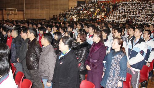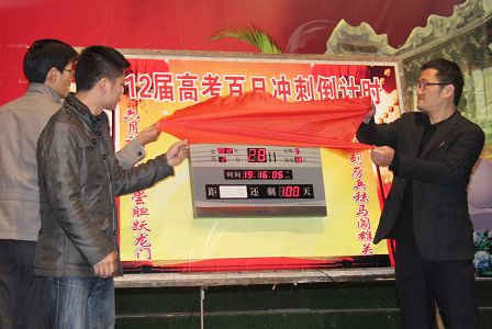 日晚,高三年段在校体育馆成功召开了高考百日誓师大会。林光灵副书记主持。大会内容丰富、节奏紧凑:首先,陈龙斌书记做了备考总动员,提出了“精神、标高、方法、状态”四个关键词,并代表学校对本届高三学生提出了具体的要求和殷切的期望。随后,在振奋人心的鼓声中,校领导和高三年段长共同揭开了百日倒计时牌。大屏幕上展现了