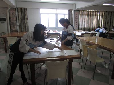 月18日下午,多日的阴郁一扫而空,泉州七中校园飘洒着温暖的阳光。由高一、高二各个班级推选出来的书画高手齐聚一堂,参加七中