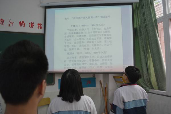 ,泉州七中高二文理科班举行了 “百位共产党人百篇小传”诵读活动。这百篇文言文写成的小传言简意赅地呈现了百位老人的光辉业绩及伟大人格。老师和同学们在诵读中感受到了中国共产党员的献身精神和崇高的精神追求。昂扬顿挫的诵读声,也传达出了我们对这百位优秀共产党员深深的敬重之情和以优秀共产党员为榜样为实现中华民族伟大复兴中国梦不懈奋斗的决心和信心。
